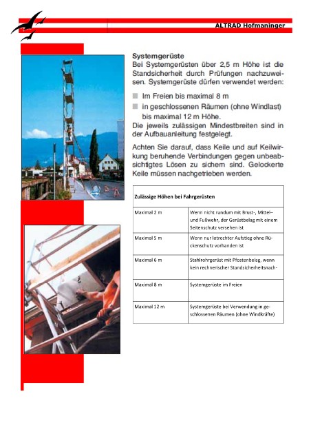 Zulässige Höhen bei Fahrgerüsten
